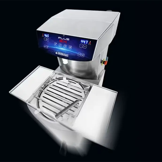 Plus EX is a new version of the chocolate tempering machine with removable screw pump and digital control panel . This tempering machine is differentiated on the market by a new patented system that allows the tempering screw pump to be removed in just a few minutes.