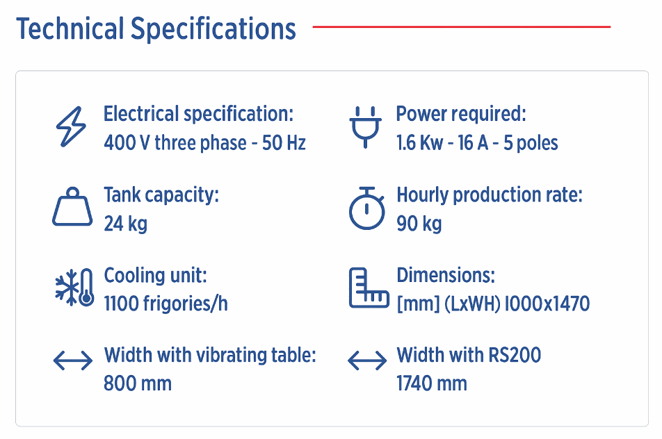- Ideal for chocolateries, patisseries, bakers and ice cream parlours.